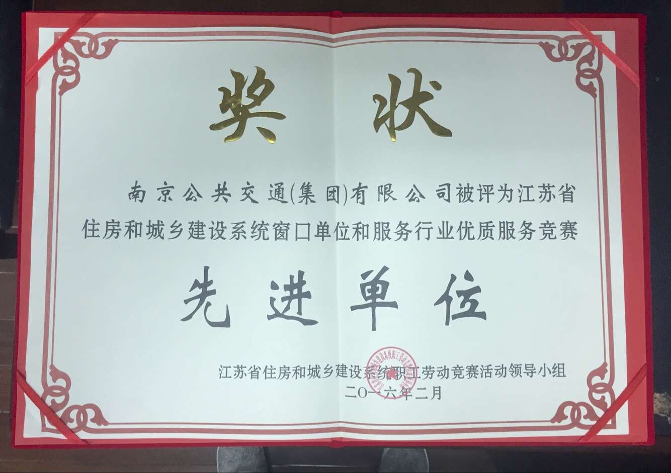 • 江蘇省住房和城鄉(xiāng)建設(shè)系統(tǒng)窗口單位和服務(wù)行業(yè)優(yōu)質(zhì)服務(wù)競(jìng)賽先進(jìn)單位